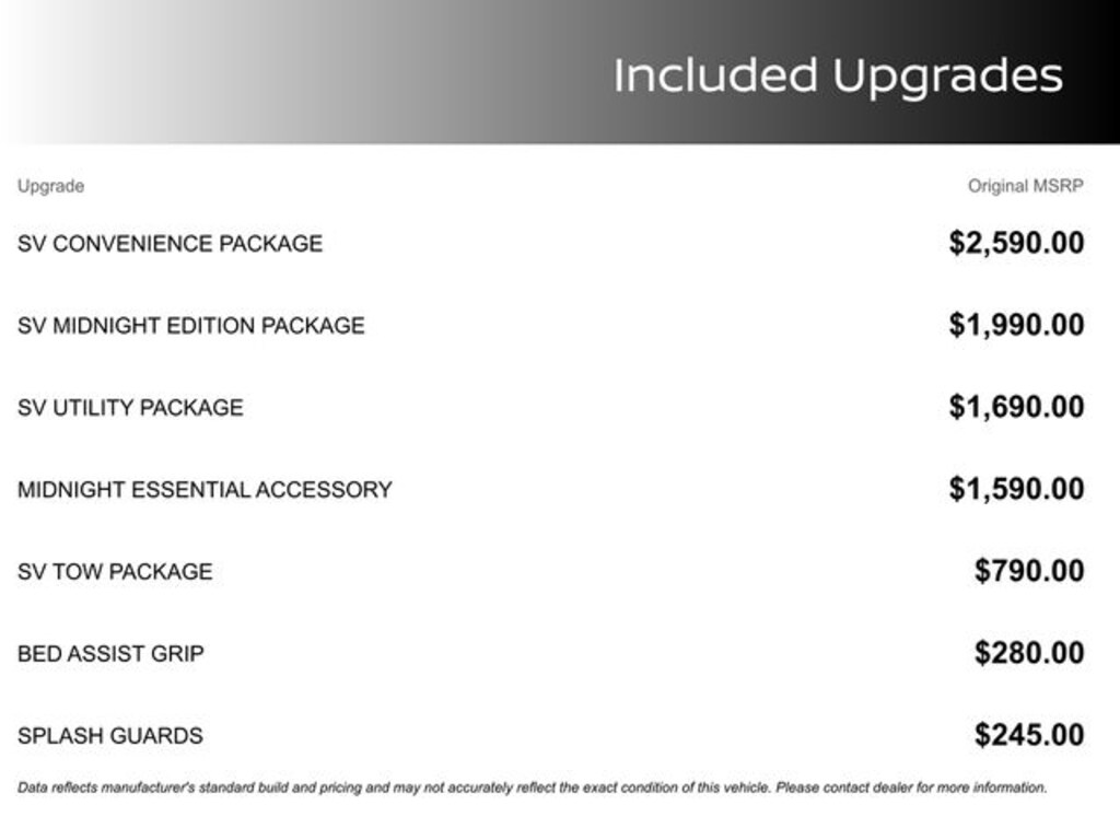 MSRP is the Manufacturer's Suggested Retail Price (MSRP) of the vehicle. It does not include any taxes, fees or other charges. Pricing and availability may vary based on a variety of factors, including options, dealer, specials, fees, and financing qualifications. Consult your dealer for actual price and complete details. Prices do not include dealer charges (which may vary by manufacturer or region), or other costs for selling, preparing, displaying or financing the vehicle. Dealer will not honor pricing errors displayed here. A dealer documentary service fee of $988 will be added to the sales/lease price of vehicle. *Price amount shown includes Mfg. incentives, additional incentives can include, (Military, College Grad, Valued Owner or Competitive Owner). Offers, incentives, discounts and financing are subject to expiration and other restrictions. Customer must finance with dealer, see dealer for qualifications and complete details.