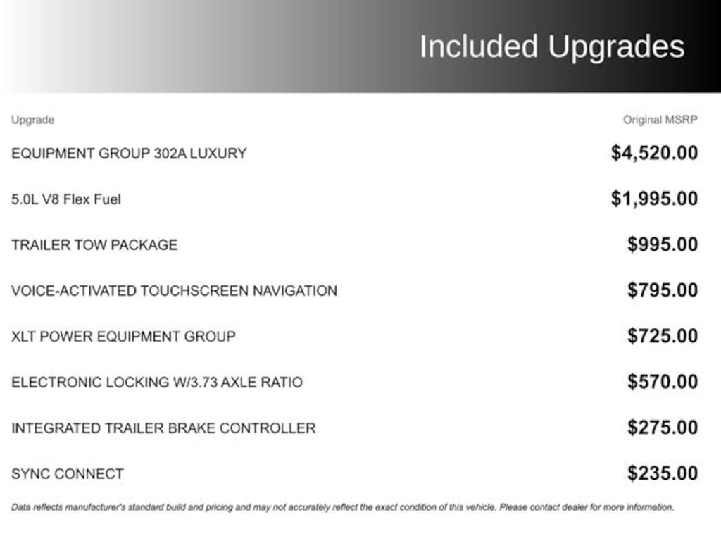 Elevate your driving experience with a host of premium features, including a voice-activated touchscreen navigation system, a convenient trailer tow package, and the XLT Power Equipment Group, which adds LED box lighting, a power-sliding rear window, and a 110V/400W outlet. Stay connected on the go with SYNC Connect, allowing you to remotely start, lock, and unlock your vehicle, as well as locate it and check its status.