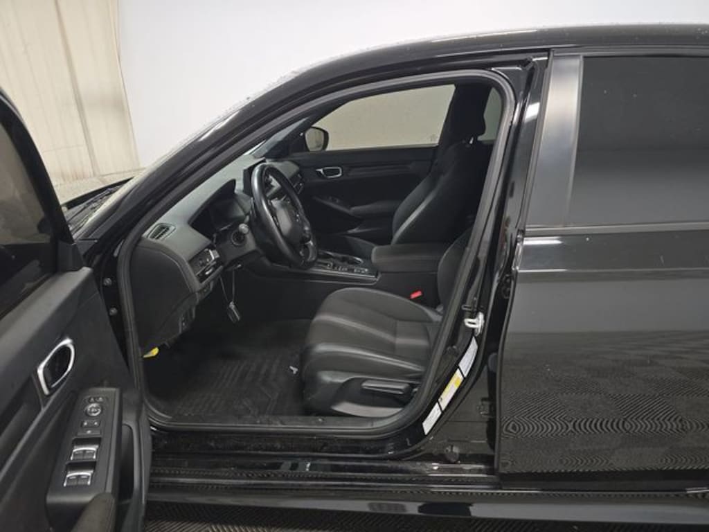 Cloth, 4-Wheel Disc Brakes, 8 Speakers, ABS brakes, Adaptive Cruise Control: Adaptive Cruise Control (ACC) with Low-Speed Follow, Air Conditioning, Alloy wheels, AM/FM radio, Apple CarPlay/Android Auto, Auto High-beam Headlights, Automatic temperature control, Brake assist, Bumpers: body-color, Cloth Seat Trim, Delay-off headlights, Driver door bin, Driver vanity mirror, Dual front impact airbags, Dual front side impact airbags, Electronic Stability Control, Emergency communication system: HondaLink, Exterior Parking Camera Rear, Forward collision: Collision Mitigation Braking System (CMBS) + FCW mitigation, Four wheel independent suspension, Front anti-roll bar, Front Bucket Seats, Front Center Armrest, Front reading lights, Fully automatic headlights, Illuminated entry, Knee airbag, Leather Shift Knob, Leather steering wheel, Low tire pressure warning, Occupant sensing airbag, Outside temperature display, Overhead airbag, Panic alarm, Passenger door bin, Passenger vanity mirror, Power door mirrors, Power steering, Power windows, Radio data system, Radio: 180-Watt AM/FM Audio System, Rear anti-roll bar, Rear side impact airbag, Rear window defroster, Remote keyless entry, Security system, Speed control, Speed-sensing steering, Steering wheel mounted audio controls, Tachometer, Telescoping steering wheel, Tilt steering wheel, Traction control, Trip computer, Wheels: 18" Gloss Black Alloy, Cloth. 2022 Honda Civic Sport FWD CVT 2.0L I4 DOHC 16V i-VTEC