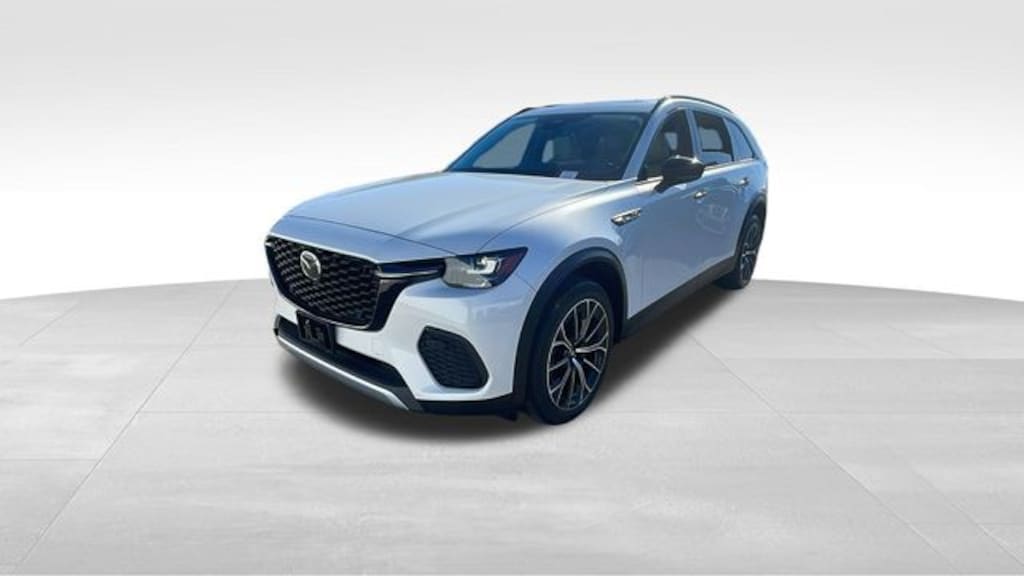 12 Speakers, 4-Wheel Disc Brakes, ABS brakes, Air Conditioning, Alloy wheels, AM/FM radio: SiriusXM, Auto High-beam Headlights, Auto-dimming Rear-View mirror, Automatic temperature control, Brake assist, Bumpers: body-color, Compass, Delay-off headlights, Driver door bin, Driver vanity mirror, Dual front impact airbags, Dual front side impact airbags, E911 Automatic Emergency Notification, Electronic Stability Control, Emergency communication system: MAZDA CONNECT, Exterior Parking Camera Rear, Four wheel independent suspension, Front anti-roll bar, Front Bucket Seats, Front Center Armrest w/Storage, Front dual zone A/C, Front reading lights, Fully automatic headlights, Garage door transmitter: HomeLink, Heads-Up Display, Heated door mirrors, Heated Front Bucket Seats, Heated front seats, Illuminated entry, Infotainment System Voice Command, Knee airbag, Leather Seat Trim, Leather Shift Knob, Leather steering wheel, Low tire pressure warning, Mazda Connected Services, Mazda Online Navigation, Memory seat, Navigation system: MAZDA CONNECT, Occupant sensing airbag, Outside temperature display, Overhead airbag, Overhead console, Pandora Internet Radio Integration, Panic alarm, Passenger door bin, Passenger vanity mirror, Power door mirrors, Power driver seat, Power Liftgate, Power moonroof, Power passenger seat, Power steering, Power windows, Radio Broadcast Data System Program Information, Radio data system, Radio: AM/FM w/Bose Premium Audio Sound System, Rain sensing wipers, Rear air conditioning, Rear anti-roll bar, Rear reading lights, Rear seat center armrest, Rear window defroster, Rear window wiper, Remote keyless entry, Rhodium White Premium Paint Charge, SMS Text Msg Audio Delivery & Reply, Speed control, Speed-sensing steering, Split folding rear seat, Spoiler, Steering wheel mounted audio controls, Tachometer, Telescoping steering wheel, Tilt steering wheel, Traction control, Trip computer, Turn signal indicator mirrors, Variably intermittent wipers, Wheels: 21" x 9.5J Aluminum Alloy. Rhodium White Premium 2025 Mazda CX-70 PHEV Premium AWD 8-Speed Automatic 2.5L I4 DOHC 16V LEV3-SULEV30