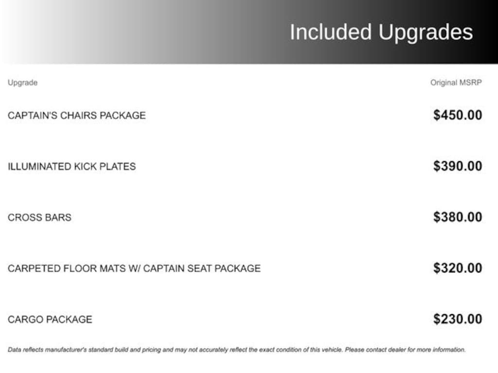 - Carpeted Floor Mats w/ Captain Seat Package