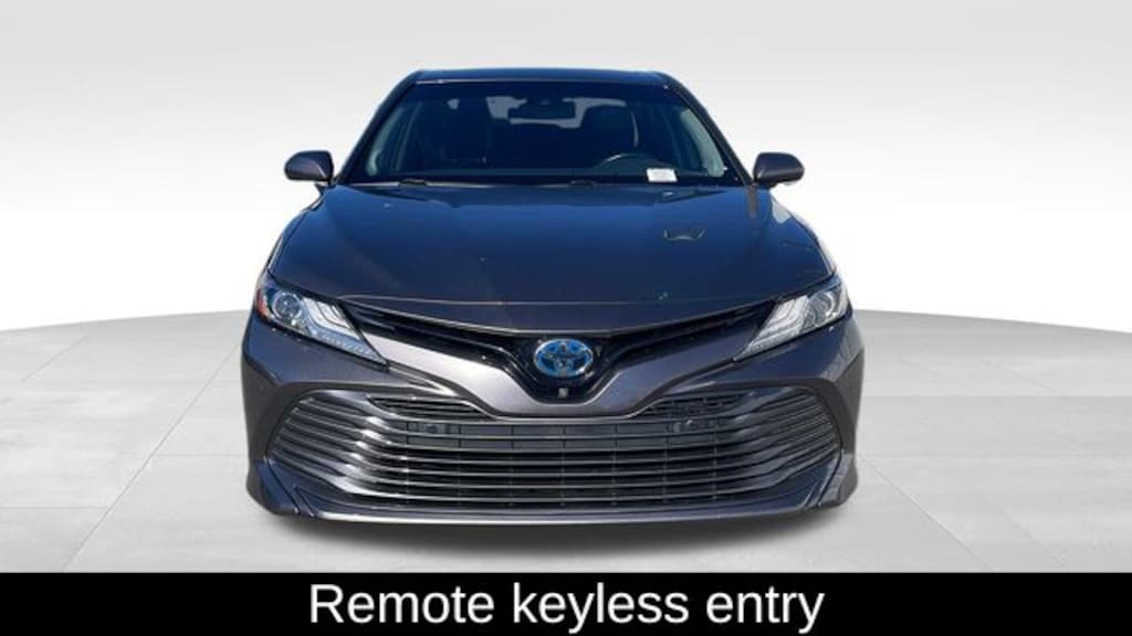 2.5L I4 Hybrid DOHC, 4-Wheel Disc Brakes, 6 Speakers, ABS brakes, Air Conditioning, AM/FM radio, Auto High-beam Headlights, Automatic temperature control, Brake assist, Bumpers: body-color, Delay-off headlights, Driver door bin, Driver vanity mirror, Dual front impact airbags, Dual front side impact airbags, Electronic Stability Control, Exterior Parking Camera Rear, Four wheel independent suspension, Front anti-roll bar, Front Bucket Seats, Front Center Armrest, Front dual zone A/C, Front reading lights, Fully automatic headlights, Heated front seats, Illuminated entry, Knee airbag, Low tire pressure warning, Occupant sensing airbag, Outside temperature display, Overhead airbag, Overhead console, Panic alarm, Passenger door bin, Passenger vanity mirror, Power door mirrors, Power driver seat, Power steering, Power windows, Radio data system, Radio: Entune 3.0 Audio, Rear anti-roll bar, Rear reading lights, Rear seat center armrest, Rear side impact airbag, Rear window defroster, Remote keyless entry, Security system, Speed control, Speed-sensing steering, Split folding rear seat, Steering wheel mounted audio controls, Telescoping steering wheel, Tilt steering wheel, Traction control, Trip computer, Variably intermittent wipers, 2.5L I4 Hybrid DOHC. 2018 Toyota Camry Hybrid FWD eCVT 2.5L I4 Hybrid DOHC